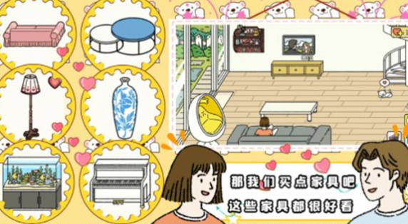 3.超多的家具和时装道具等你用红色爱心购买,让这些物品有秩序的摆放。
