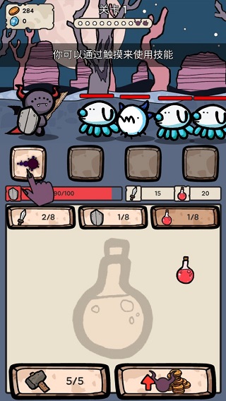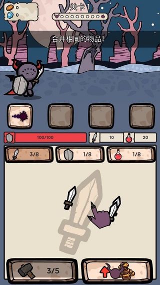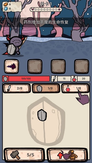 另外,在游戏中武器增加恶魔的攻击力,盾牌可以增加恶魔的最大生命值,药剂增加恶魔的生命恢复。