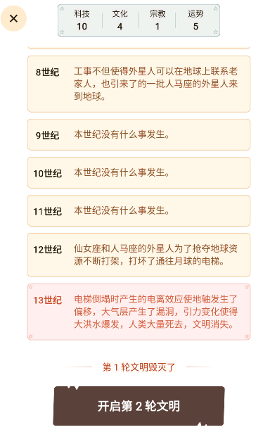 4、点击完成你的文明推演,直到文明毁灭为止吧。