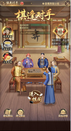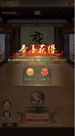 5、圣上每次登上棋阁三层时,可以获得两本棋谱,并有概率搜索到同时间在第三层的其他圣上;