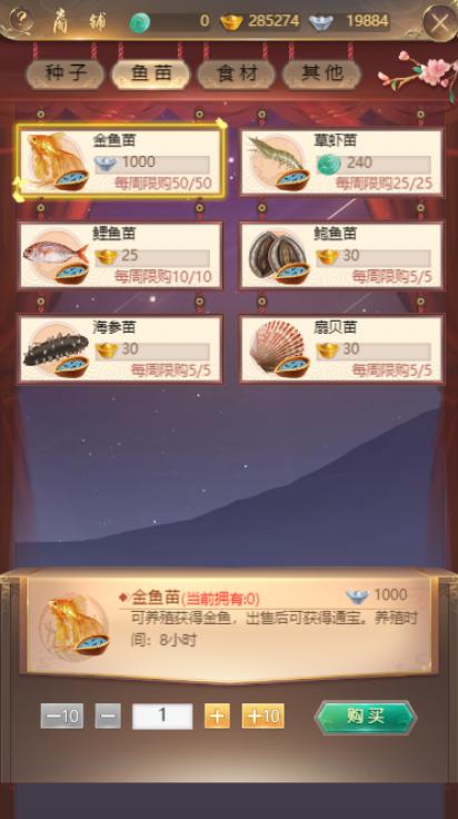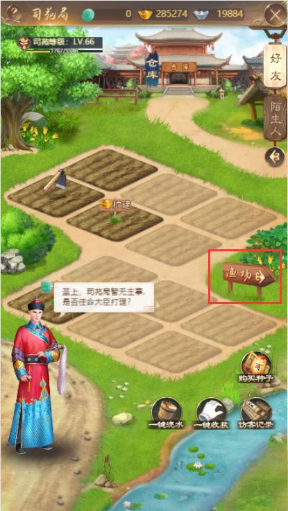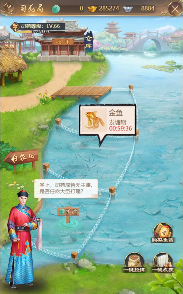 新增的渔场与农田一样,圣上可在已开启的鱼塘中养殖水产品。养殖需要鱼苗,圣上们可在商店中购买哦~