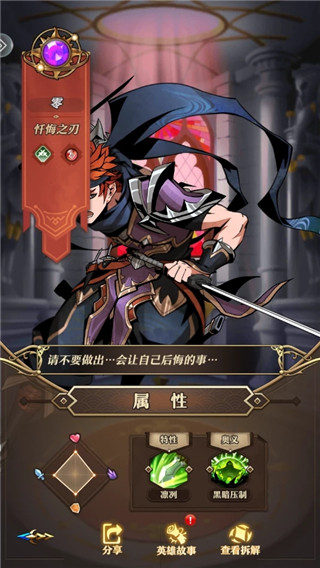 2、中排刺客:推荐零忏悔之刃,零使用特殊的剑术,他的目标会被降低20%的物理防御、法术防御以及的50%的生命回复量。零切换目标后此减益效果也会转移到新的目标身上。