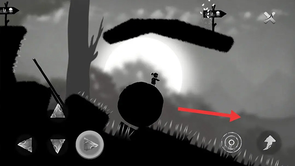 ①跳跃躲避路上的小骷髅,继续向左走至大球旁。