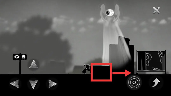 ②左边出现第一关使用过的可移动的正方体。将其向右推至骷髅旁