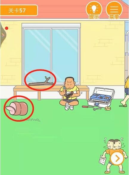 4、切换到右边场景,打翻垃圾桶并打开门,在厕所里拿走卷纸和垃圾桶里的香蕉;回去将香蕉给爸爸;等爸爸上厕所后将试卷给爸爸。