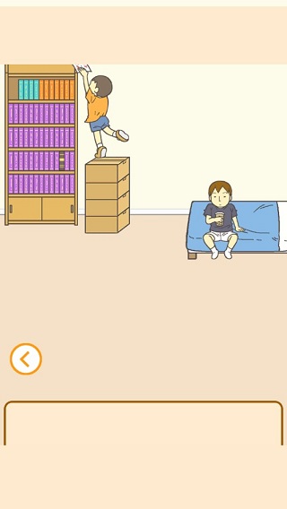 7、切换到右边场景,拿到箱子上的香蕉;然后将香蕉给小哥吃,获取到香蕉皮;回去将香蕉皮使用在爸爸上,然后获取到3个箱子;将箱子使用在书架旁边,最后将试卷放到书架上。