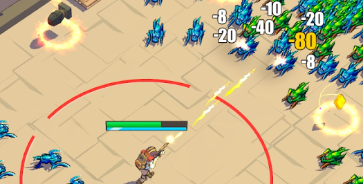 在一家废弃诊所的狭窄空间中射击外星人。 在子弹地狱中的核电站反应堆上的数百个僵尸的割草浪潮。 在核筒仓中与一个强大的老板作战。 对于这些战斗,您将可以使用从手枪到火箭发射器的大量不同武器。 在我们的离线自上而下的射击游戏中,将有很多肾上腺素的动作和射击与成群的外星人。