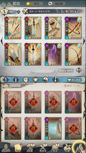 8、接着来到武功界面,在这里拖动卡牌即可对卡组进行调整。