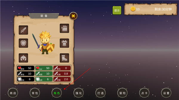 1、打开地下城与商人,点击进入,选择【角色】可以了解已有角色的各种属性装备,