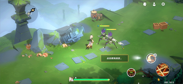 3、出现敌人时,使用右边的攻击按键进行战斗,大按钮为普通攻击按钮,小按钮为战技和大招