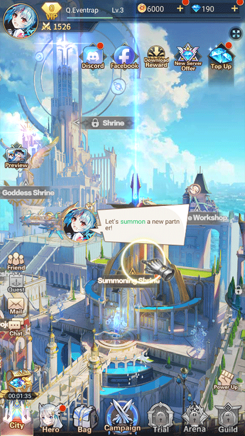 5、想要赢得更多的胜利,你还需要招募更多强大的英雄,在city界面中点击召唤