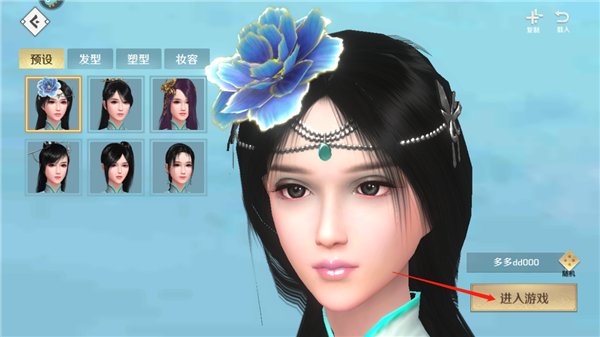 3、选择好你想要的发型、塑型、妆容后点击进入游戏;