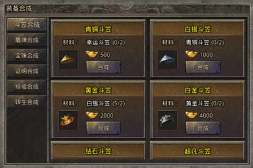 斗笠&盾牌&宝珠合成:打开合成页面可进行合成装备,使用低等级的装备和元宝可以合成高等级的装备