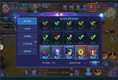 2、【每日签到】:道友们可以通过点击福利按钮进入福利系统,在每日签到活动界面,道友们坚持每日签到,不定期可以拿到一定数量的金币,这也是金币来源的一个不错的渠道哦。