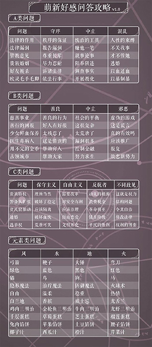 1、此为“极简好感速答攻略”,仅提供话题和好感问答内容,限老玩家使用!萌新请用“萌新好感问答攻略”;