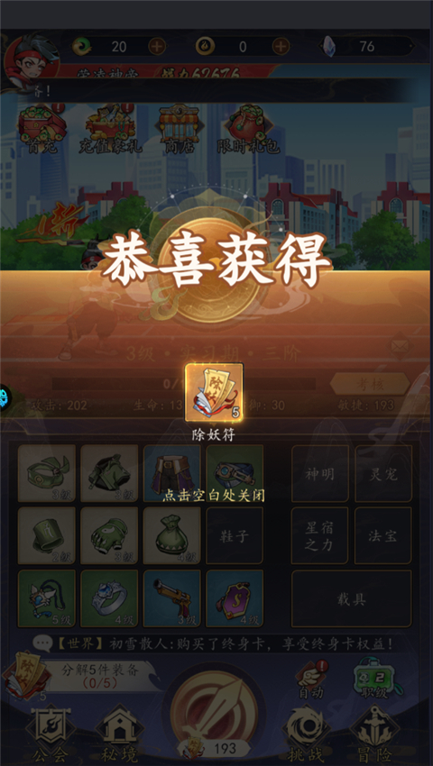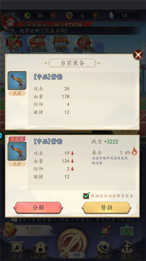 1、进入游戏点击战斗,击败敌人可以随机获得装备,当装备是你当前差的可以进行分解