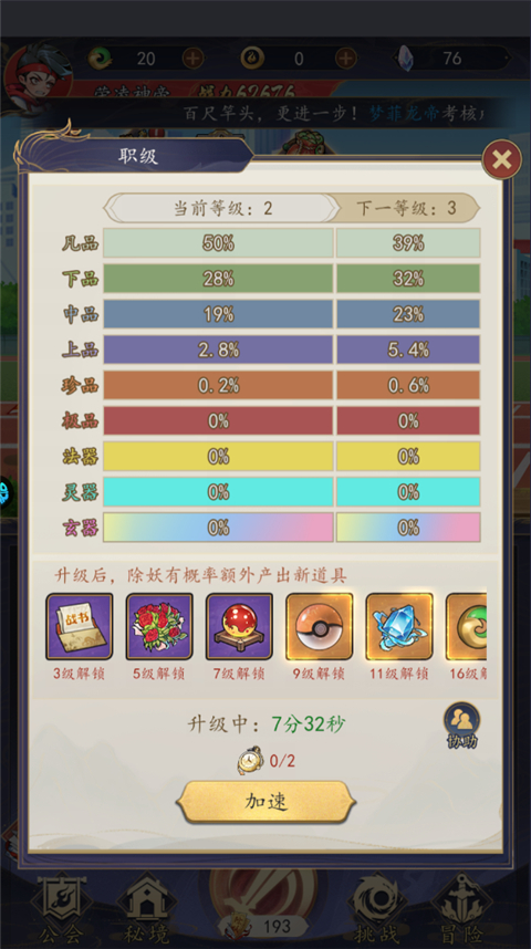 4、当你刷不出厉害的装备,可以升级职级可以增加稀有装备的几率