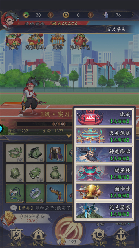 5、右下角还有冒险模式,点击进行挑战成功可以获得战斗卷以及道具