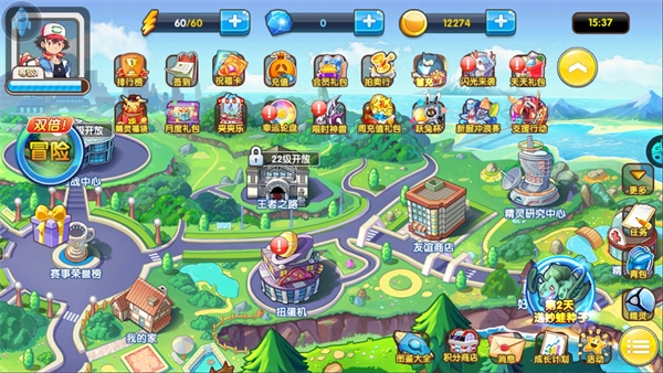 训练师们通过城镇之旅,激情冒险,解锁多种地图关都地区,城都地区,丰源地区等,挑战BOSS畅爽通关,领略战斗美妙,赚金币领道具,更有机会掉落稀有精灵碎片。