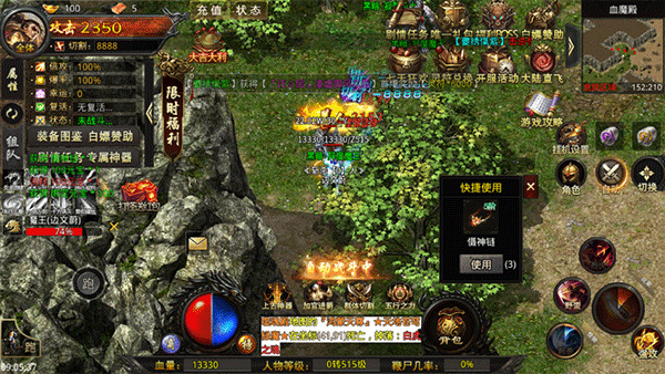 3、在玩法方面,以打金、升级、爆装、抢沙等传奇核心玩法为主。