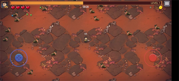 4、进入之后左边蓝色控制角色移动,右边红色是开火移动。