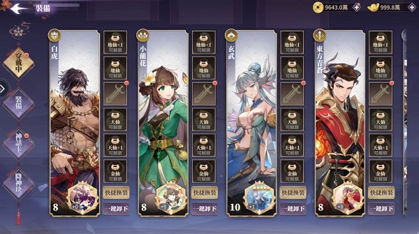 在《三界幻想启示录》玩家一共可以配戴“头盔”、“衣服”、“玉珮”、“戒指”、“项鍊”、“武器”等六件装备,在前期只要考量装备属性,只要有提升就可以使用,到了中后期就需要针对武将的属性去做配置,最基本的概念可以从角色的定位中选择装备属性。输出型选择“攻击”、“暴击机率”为主,到后期暴击机率提升后,可以视情况补充“暴击伤害”;控制型角色则以“速度”为主,其馀可选择“命中”、“抵抗”等,以能够最快速度放出控场技能为主;至于肉盾型角色当然最主要就是选择“防御”属性。