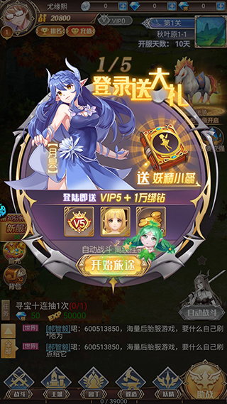 2、玩家上线就能领取新手登录大礼,免费领取VIP5、1万绑钻等。