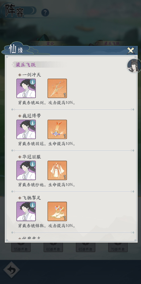 3、当一名角色穿戴指定的装备后便可获得专属的属性提升
