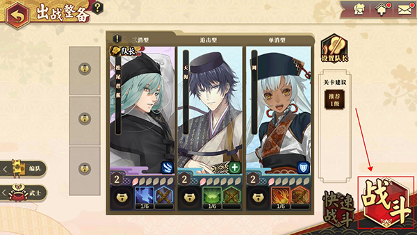 3、之后玩家就可以自由配备武士队伍,将队长型武士设置为队长可以有效增加队伍战力。