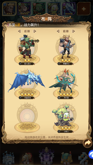 5、点击冒险进入冒险关卡,能够快速升级自己的英雄和自我经验,让自己快速成长!