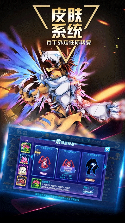 2、多线玩法、进化升星、宝石装备等,每个数码兽都会有不同的养成路线。