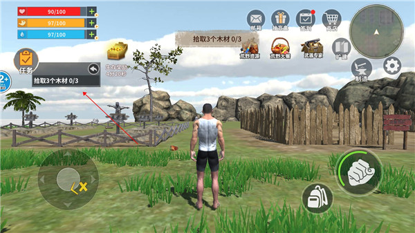 1、进入蛮荒进化生存游戏后,可以根据左边的任务来确定自己的目标。