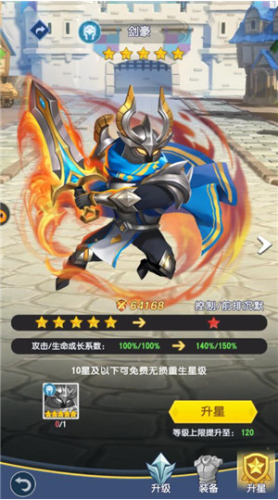 3、升星,我们可以使用英雄的碎片来给英雄升星,升星之后就可以大幅的提升英雄的属性,从而提升战力。