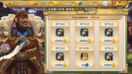 高级招募:每48小时可免费进行抽奖1次,最高可抽出三星英雄。