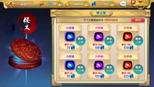 分为:真气炉(经脉真气丹)、聚贤庄(英雄碎片)、侠义堂三个主题。每隔两天更换一个主题。因为所有道具都是折扣价出售的,如果大家有需要的话就立马下手抢购吧。