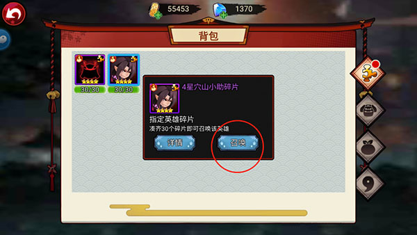 9、领取了新的英雄大人不要忘了在【背包】进行合成来召唤该名强力英雄哟,召唤完成后就可以上阵强力英雄来提升自己的实力了。