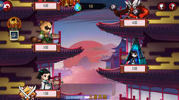 4、英雄进阶遇到瓶颈大人移步【千守阁】进行爬塔挑战即可获得大量进阶石哦,每5层设置有装备、道具奖励,通关30层还能邂逅一名强力5星英雄,是不是很期待!