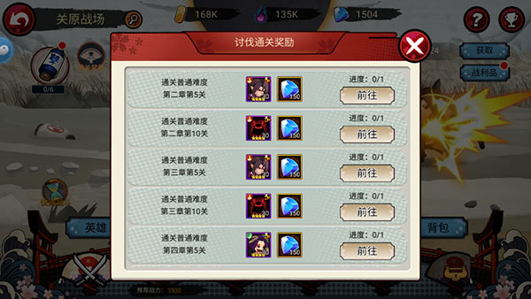 【讨伐通关奖励】通关章节越多,送的英雄就越多。
