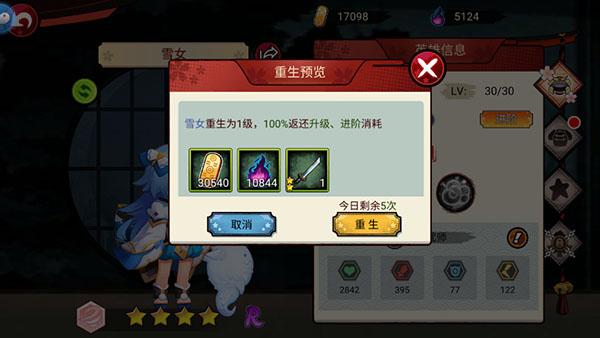 3、讨伐过程中大人可以先提升当前队伍的实力哦。不用担心消耗了培养资源(金币和英雄经验),每天大人都可以有5次机会进行英雄重生,不用分解原英雄,100%返还升级、进阶的消耗材料,只要各位大人合理分配重生次数,英雄储备和战力提升我们就可以两手抓!