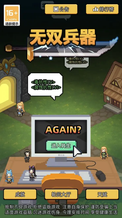 无双兵器游戏是一款集合了异世冒险+肉鸽+角色养成的单机像素游戏。