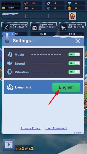2、然后点击language选项里的English切换语言。