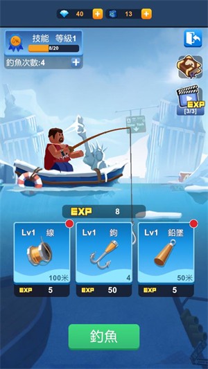 5、点击冰钓可以通过钓鱼来获得额外的资源,每天可以钓鱼的次数是有限的。