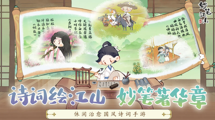 妙笔江山手游是一款以中国诗词文化为题材的角色扮演类手机游戏。游戏主要讲述玩家扮演的书生不断学习精进,一边游历山水、结交名士,一边以成为文道圣人为目标的故事。