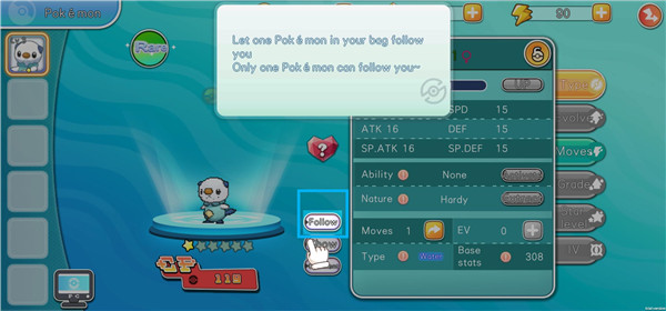 5、玩家可以点击follow,让该宝可梦跟随。