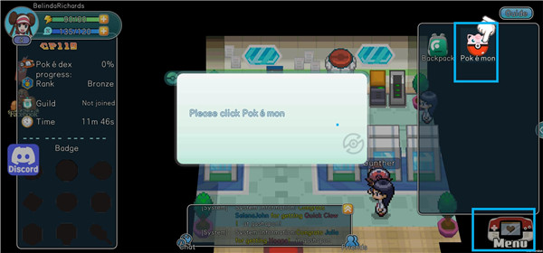 4、点击menu,选择pokemon,进入宝可梦界面。