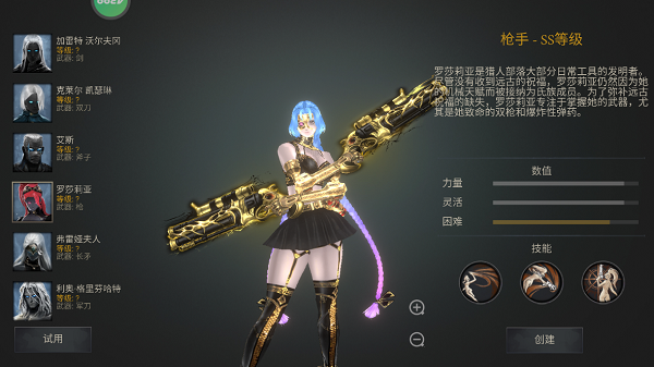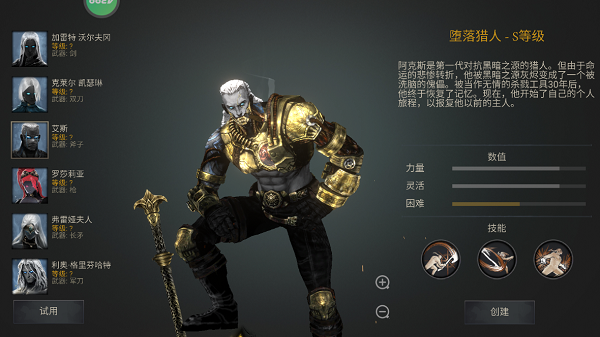 1、首先,我们进入游戏后,需要创建英雄;(只能选择第一个哦~其他的英雄都需要通过一定的关卡才能解锁)
