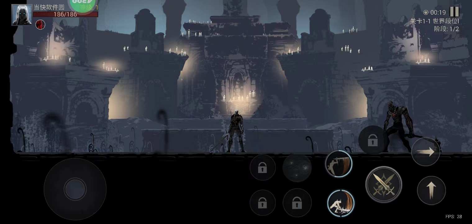 3、然后就可以开始游戏了,左边的按钮控制角色的走向,右边则是技能;
