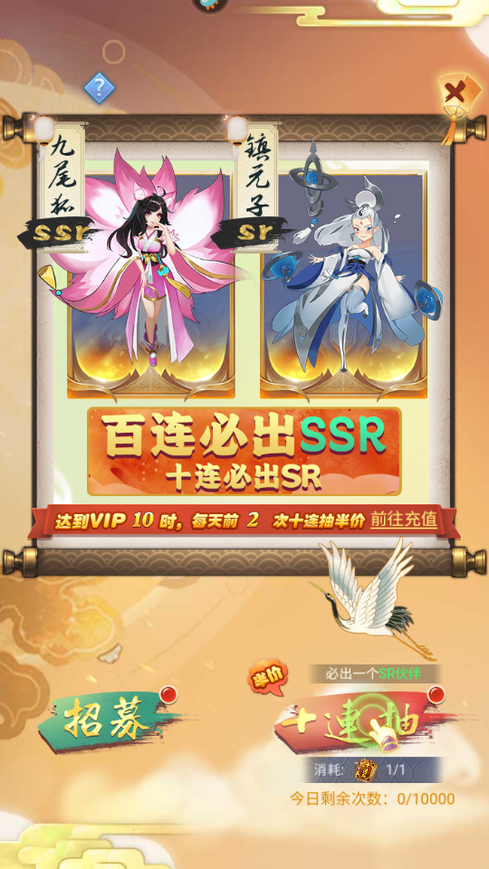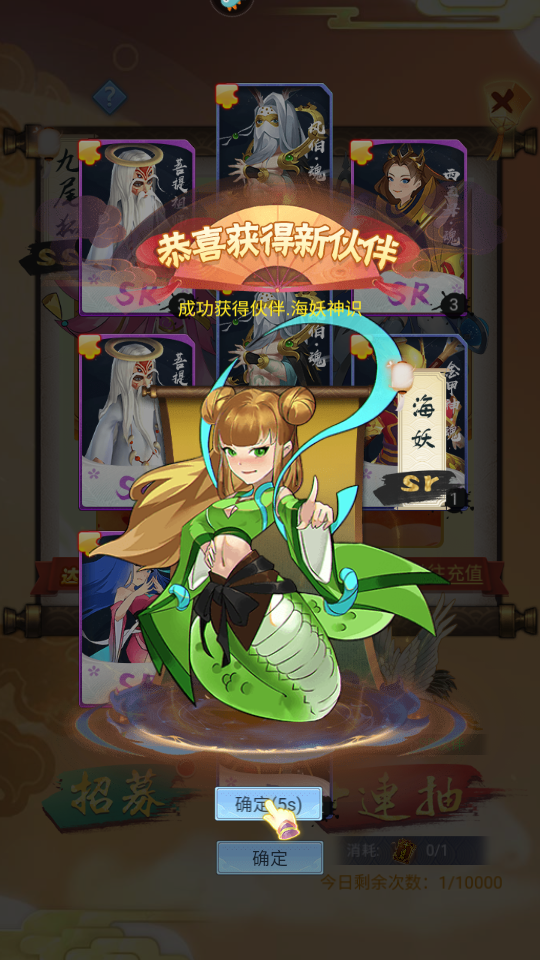 6、在修仙的过程中,可以选择伙伴,点击十连抽,抽取你的修仙伙伴;