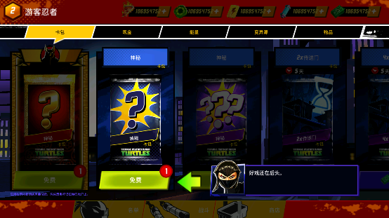 收集每日奖品和卡包来增强你的团队!我们主宰这座城市:在电视节目里忍者神龟最喜欢的地点对抗克朗,包含了 X 次元、下水道和经典的纽约屋顶!