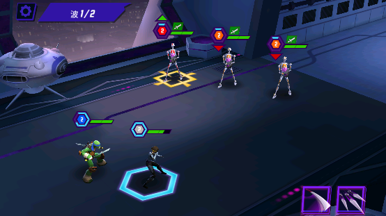 1、忍者神龟传奇游戏中玩家可以收集各种忍者神龟中的强力卡牌角色进行战斗,融入了动漫中的场景。